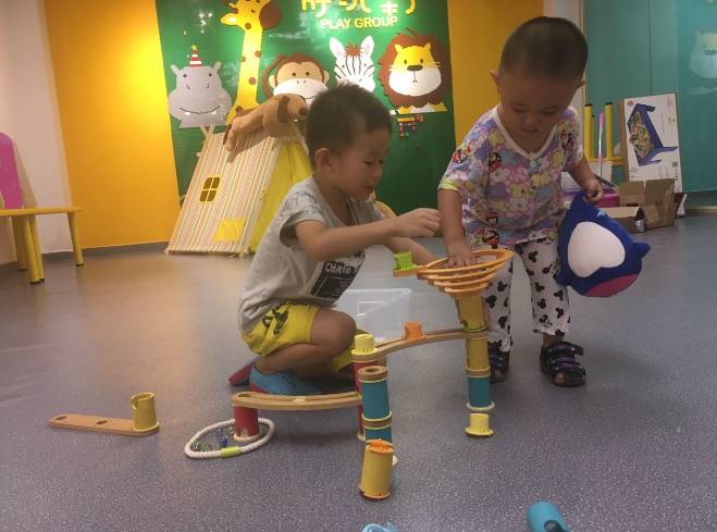 等待聪明的宝宝拼成各种滚珠轨道