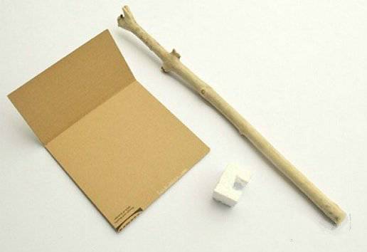 原料:废纸箱、树枝、一次性筷子,还有一点点黑色小布片