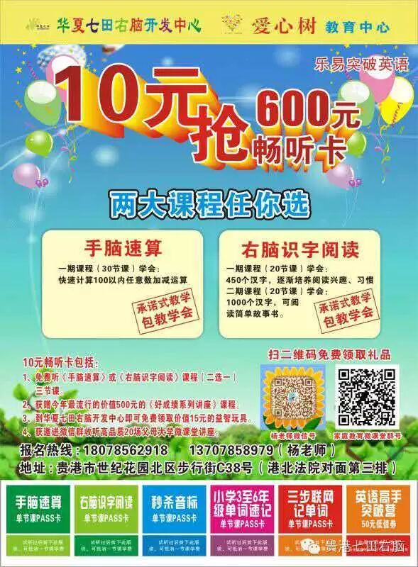 华夏七田右脑跨年钜惠,更多优惠!更多惊喜!请阅读以下内容:
