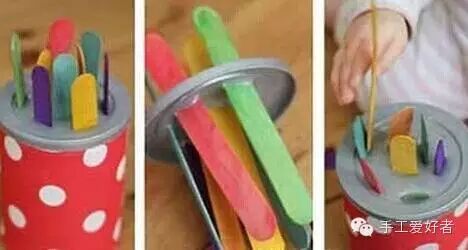 小一点的孩子一定会非常乐于把雪糕棒插进去,再拉出来,这个简单的过程,会让孩子的手部力量以及手眼协调能力得到锻炼。关注早教资料每日分享QQ/微信:2637884895,每天分享早教育儿知识~