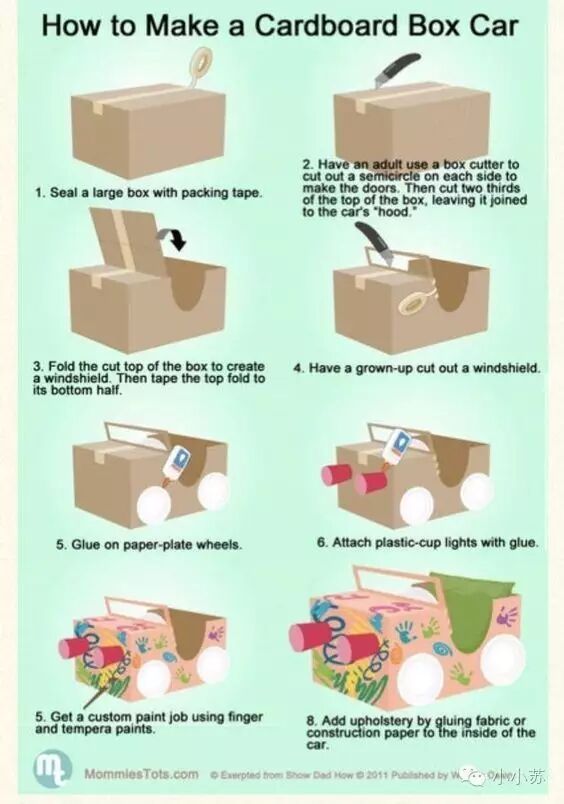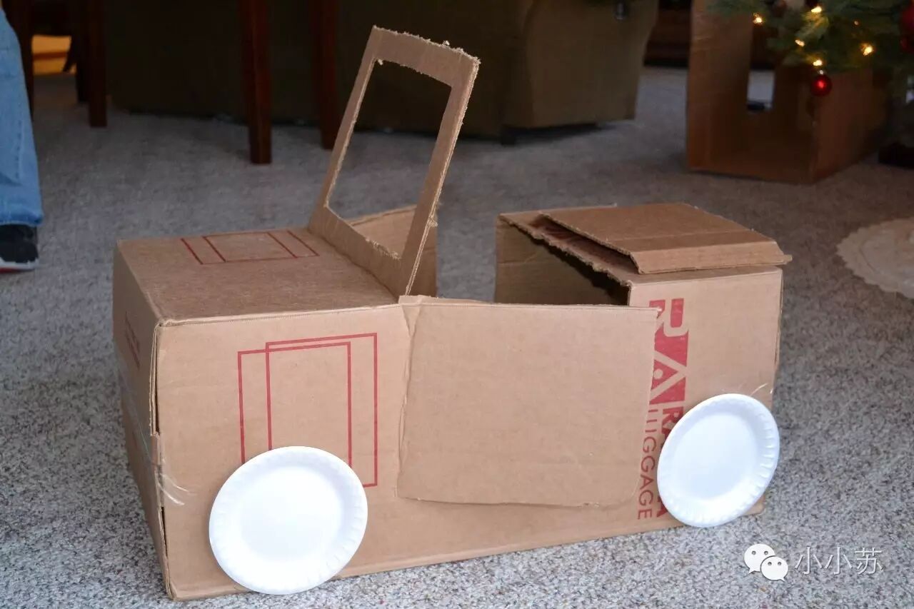 交通工具是很多小朋友着迷的话题,经过简单的剪裁,加上一次性盘子,就可以把纸箱变成宝宝的第一辆炫酷跑车,超级拉风有木有~