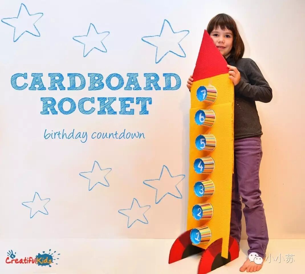 还有爹妈脑洞大开,用彩纸、爆米花盒子和纸箱给女儿做了个火箭????????????: