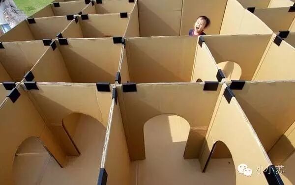 如果你的纸箱足够大,可以在箱子里给孩子创造一个“小世界”,几个箱子拼接在一起,也能达到这种效果: