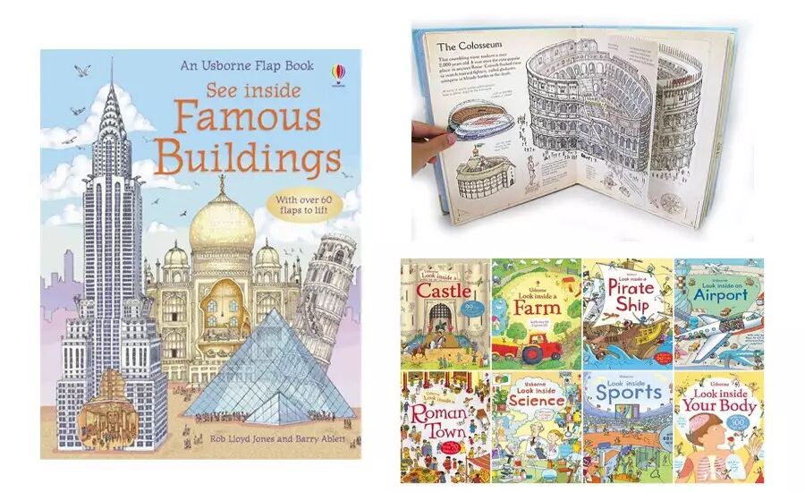 爸爸妈妈都曾经听到过Usborne的这个经典系列。其中一部分已经翻译引进。但相对来说,原版的英文绘本总类更全,制作也更精细一些。这套绘本不仅仅只是告诉小朋友事物的内部构造,而是亲手让小朋友探索事物内部的奥秘。比如推开每一扇门看看里面住了谁?打开汽车的引擎盖,看看里面是什么。这种生临其境的感觉,不仅增加了小朋友的兴趣,也会让小朋友更容易记住书中的内容。