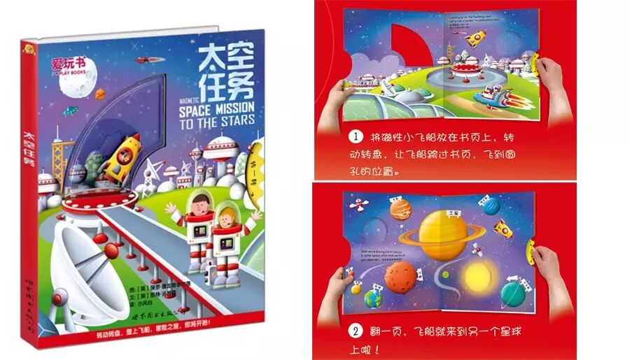 这本书也是属于中文引进绘本里形式比较新颖的,它是一本磁力书,书中的小火箭可以吸在书上面,然后转动书上的小转盘,火箭就真的飞起来了,当它飞到另一个星球上,就让孩子们翻页看看这个星球是怎么样的吧。除了形式新颖外,内容也是小朋友们都喜欢的外太空。我们家那位3岁的小王子已经是爱不释手了。