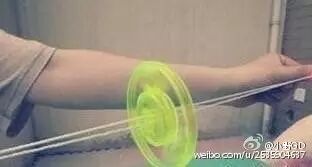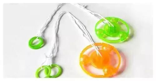 绳子两头一拉,中间的塑料圈就会转起来,还有声音哦~哈哈哈,以前这样也能玩一天!