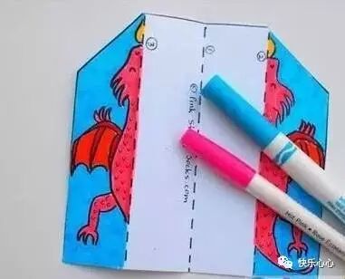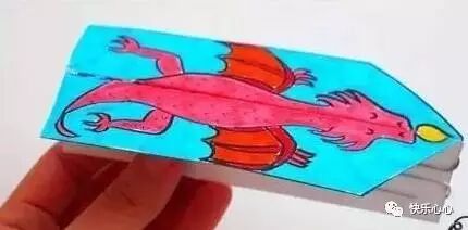 然后将中间空白对折粘贴,合上之后就是一致可爱的喷火龙了,记住用曲别针加固增加飞机的重量,飞出去的时候就不会因为太轻而飞不远了。