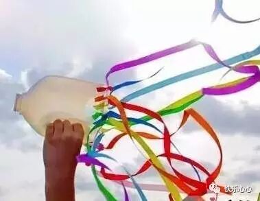 再拉风点的,用农夫山泉的空塑料桶也可以搞定。娃把它拿在手里,在风中就像是飘舞的彩虹。