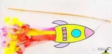 最后用线拴到木棍上,就可以拿到外面去玩了,火箭的“尾巴”在风中飘起来得样子是不是很像宇宙里的哈雷彗星。