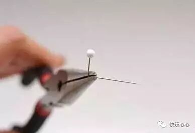 在制作风车之前,先做一些准备工作,用钳子把大头针弯折成直角。