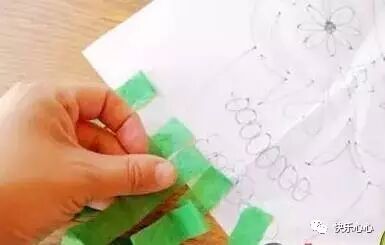 先将白纸的飞机做好,用彩笔涂鸦,在没有粘贴之前,可以让娃猜一猜这是什么图案。