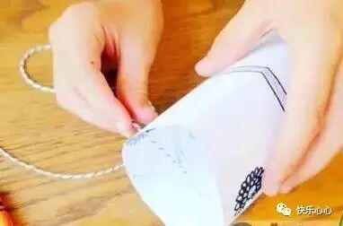家里那些带把手的塑料桶,都可以拿来做,把底端去掉,用订书器把彩色纸条、丝带钉一圈在底边上就做好了。