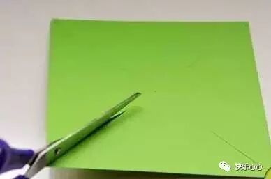 取一张正方形的纸,向正方形的中心,沿着对角线剪开。