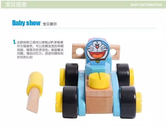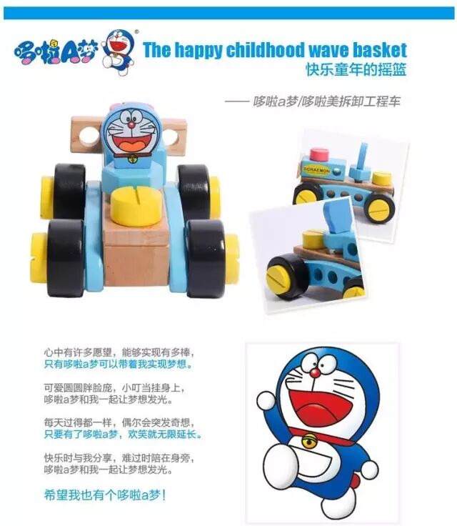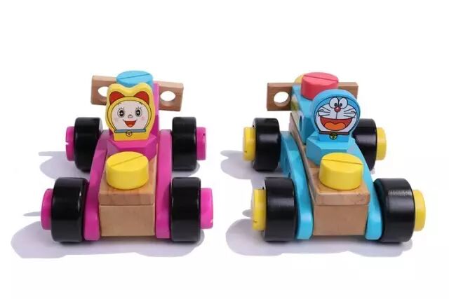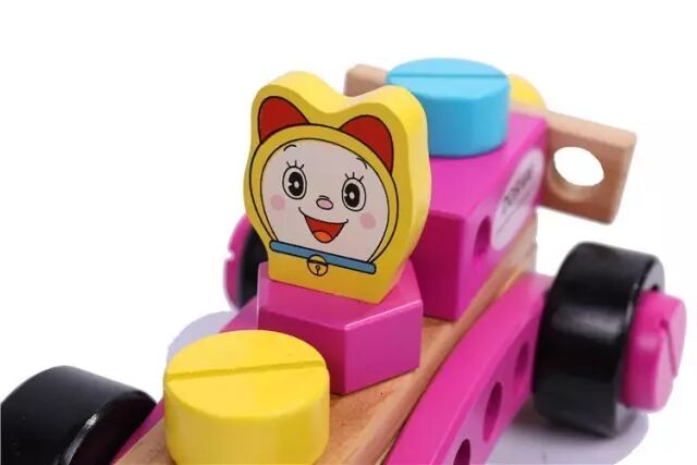 强烈推荐~益智儿童木质玩具哆啦A梦组装工程车