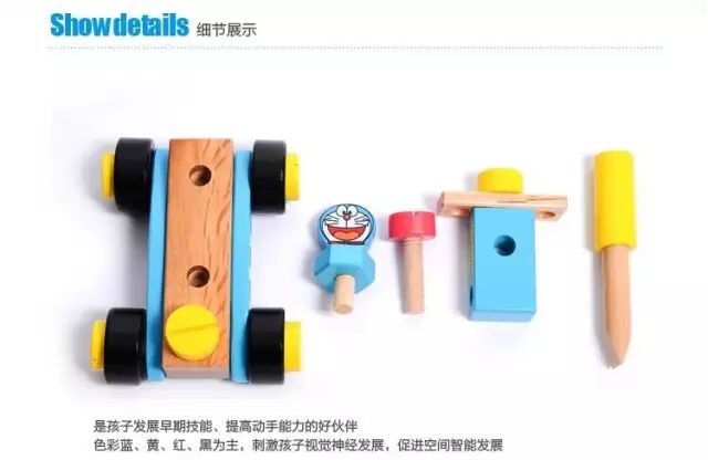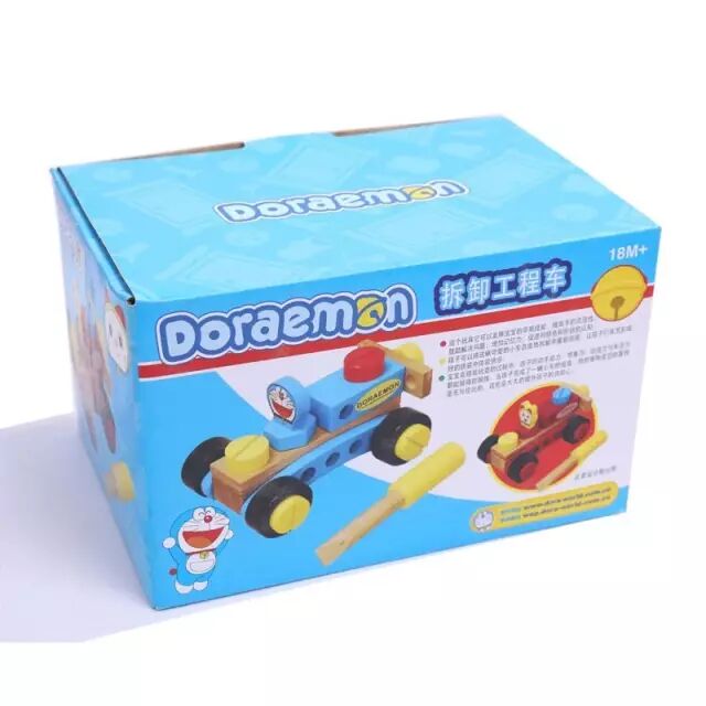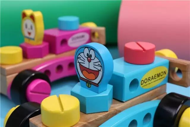 折算成人民币133元强烈推荐~益智儿童木质玩具哆啦A梦组装工程车