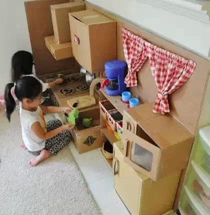别看人家是纸箱做,可是五脏俱全诶,小朋友来了该多羡慕啊!