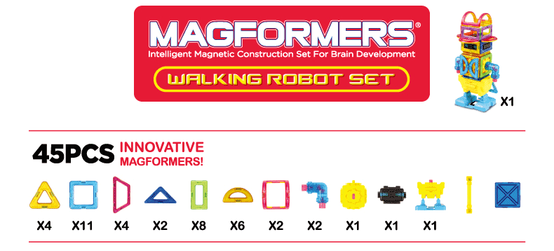 团品2:【行走机器人】magformers麦格弗磁力片拼装益智玩具(45片)