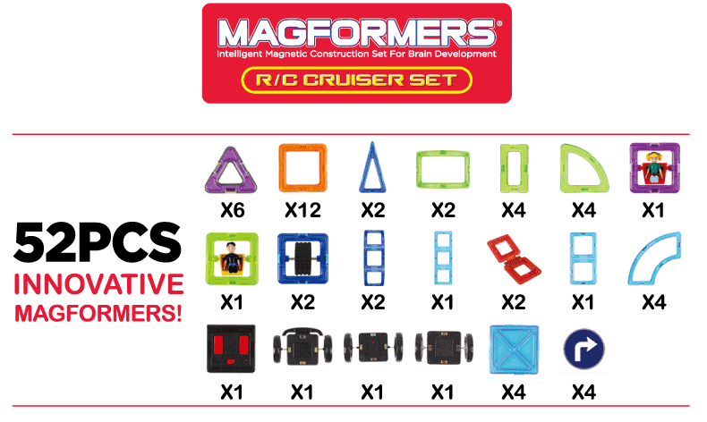 团品3:【四方位遥控车】magformers麦格弗磁力片拼装益智玩具(52片)