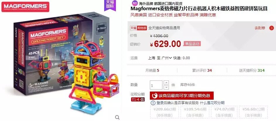 △美亚对Magformers(麦格弗)益智磁力片评论