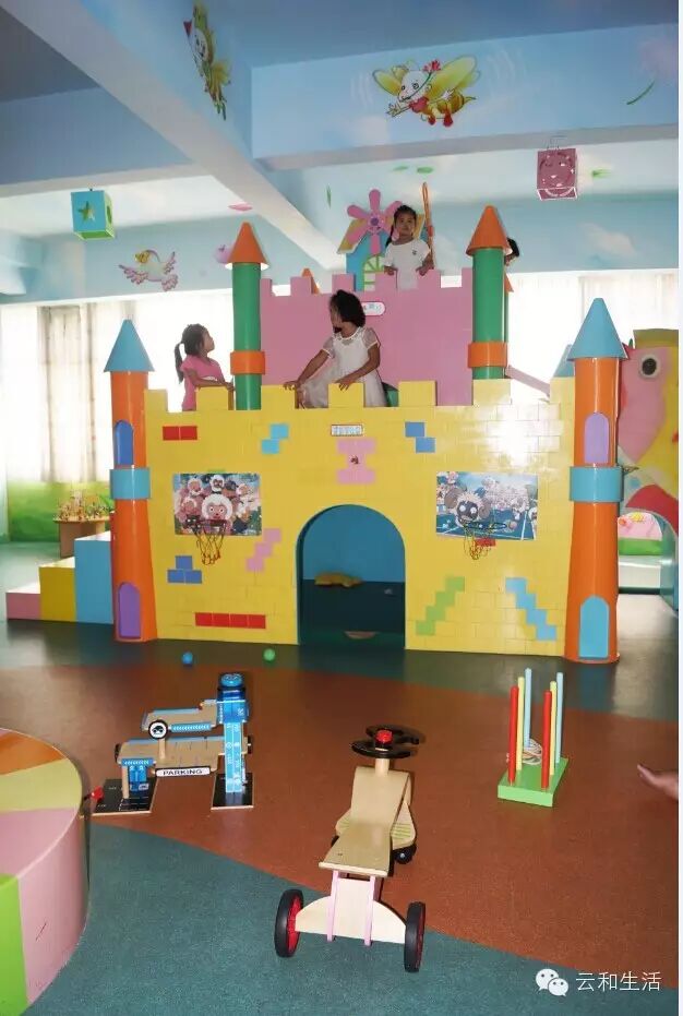 益智乐园是孩子们玩耍的天地,配备各种玩具设施,如积木城堡、草莓房、音乐房、跷跷板等,既可单人玩乐也可团队比拼,还能和家长进行互动,增近亲子情感。
