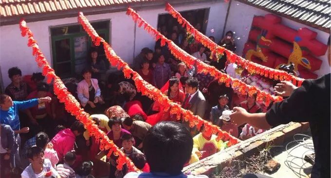 下午四点钟,总理(主持人)就安排“娘家人”再次“坐桌”,吃过后就要送“娘家人”回家了。新娘雨花也坐在“娘家人”的旁边一起吃。