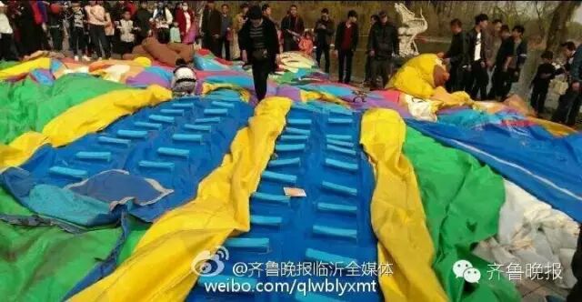 据记者调查,当日下午3点半左右,山东省临沂市罗庄区双月湖公园一座充气彩色城堡被风吹翻落水,致正在玩耍的9名儿童均不同程度受伤,其中1名儿童因受伤较为严重需住院治疗,其余伤者已出院。