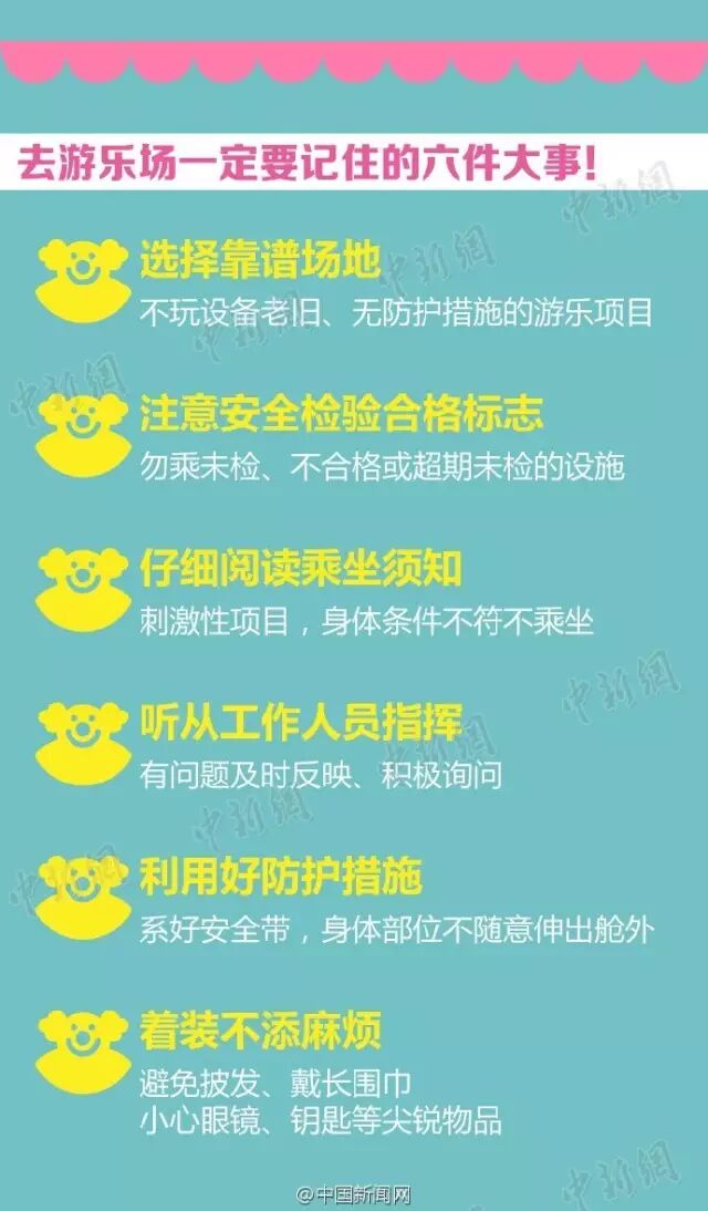 1.尽量避免让孩子玩那些不适合他年龄、身高、体质游乐项目。游艺设施安全带、安全杆的尺寸大都是按照身高而非年龄条件限制的,千万别认为孩子年龄够了,就让孩子去玩那些不符合身高标准的游乐项目。