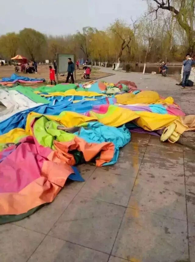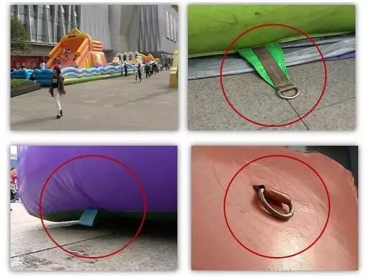 由于充气城堡在室外空旷的地方会遭遇不明方向的大风,这个时候,如果城堡未固定牢固就极易酿成惨剧!如果说强风属于不可抗因素,那么爸爸妈妈们在带孩子游玩时请注意:不要带孩子去未用铁链固定的充气堡玩,一旦遇到大风天气立刻撤离。