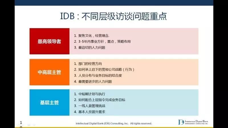 由IDB首席顾问&高级合伙人——Mary Xu建立,汇集了十数个行业的资深HRM、HRBP、HRD。旨在探索企业人才管理与发展,成就企业自己专业的人才顾问。
