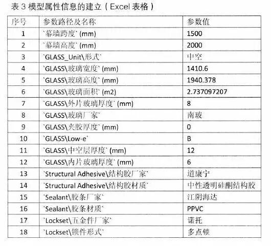 (3)属性信息通过EXCEL表格建立属性信息是幕墙BIM的特征之一,通过CATIA系统,可以采用EXCEL表格建立参数或变量,并能够实现双向信息传递,实现协同设计。传统的3D技术不能附加属性信息,阻碍了信息的传递。