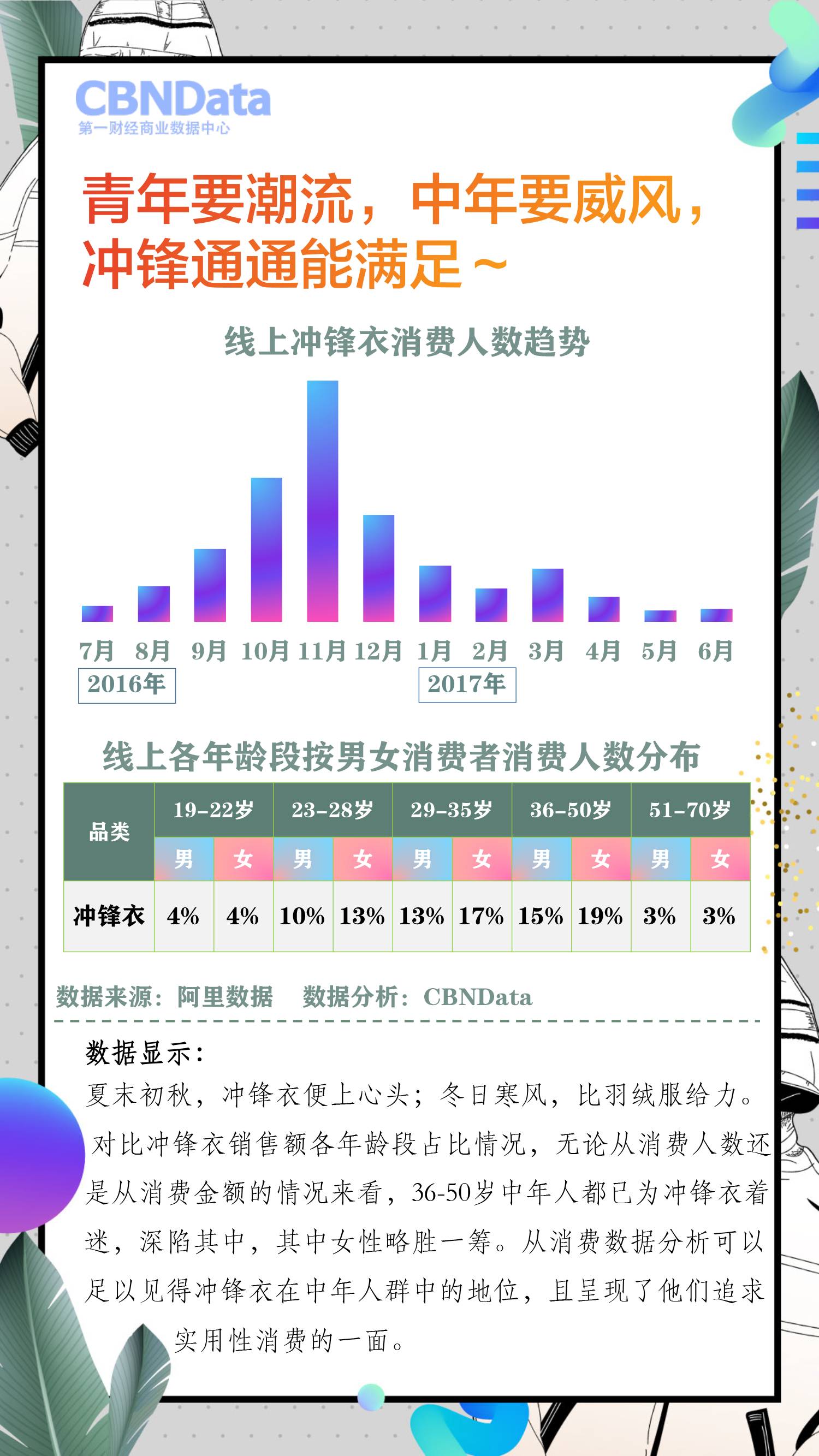 近日,第一财经商业数据中心(CBNData)发布了《2017线上冲锋衣相关消费研究》(以下简称《研究》)。基于阿里数据,通过洞察2016年7月至2017年6月线上各年龄段消费人群对于不同品牌冲锋衣的偏好特征以及购买行为,还原国民冲锋衣消费现状。