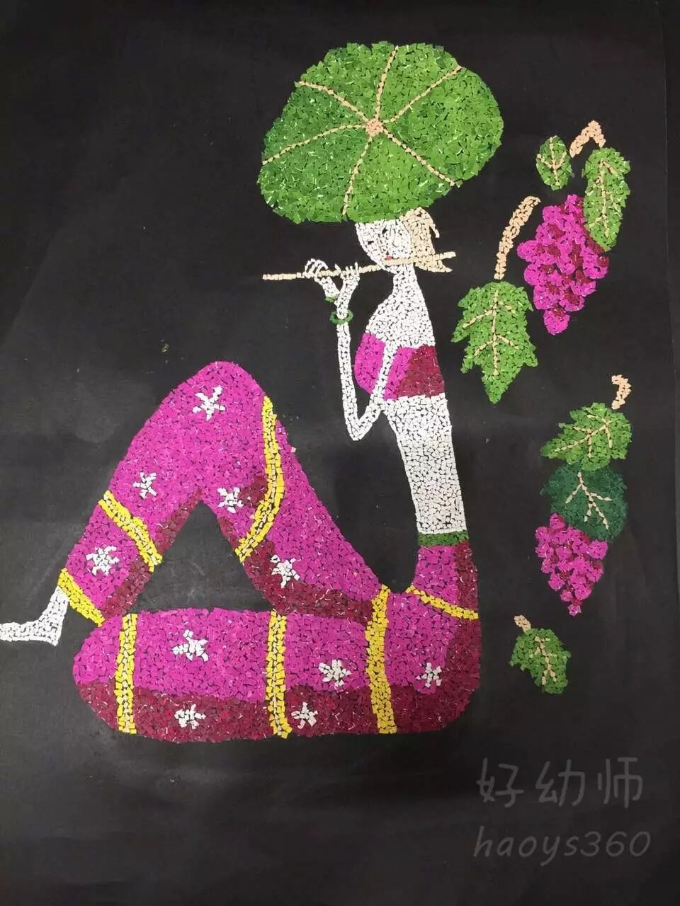 作品描述:这幅作品是用我们平时最常见,也最容易被大家遗弃的碎鸡蛋壳做的画。