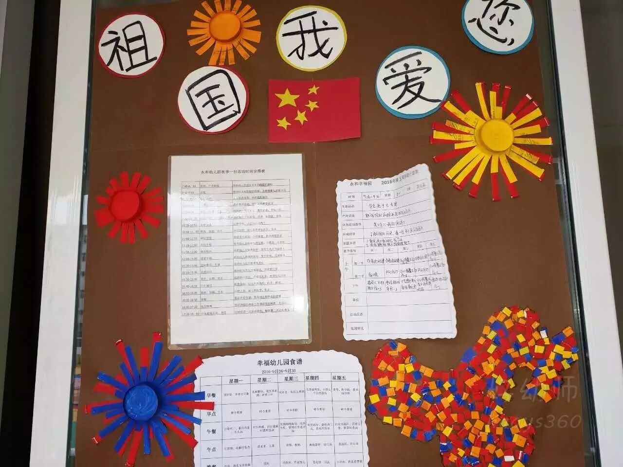 作品描述:关于国庆节的家园联系栏,采用的材料是纸杯。