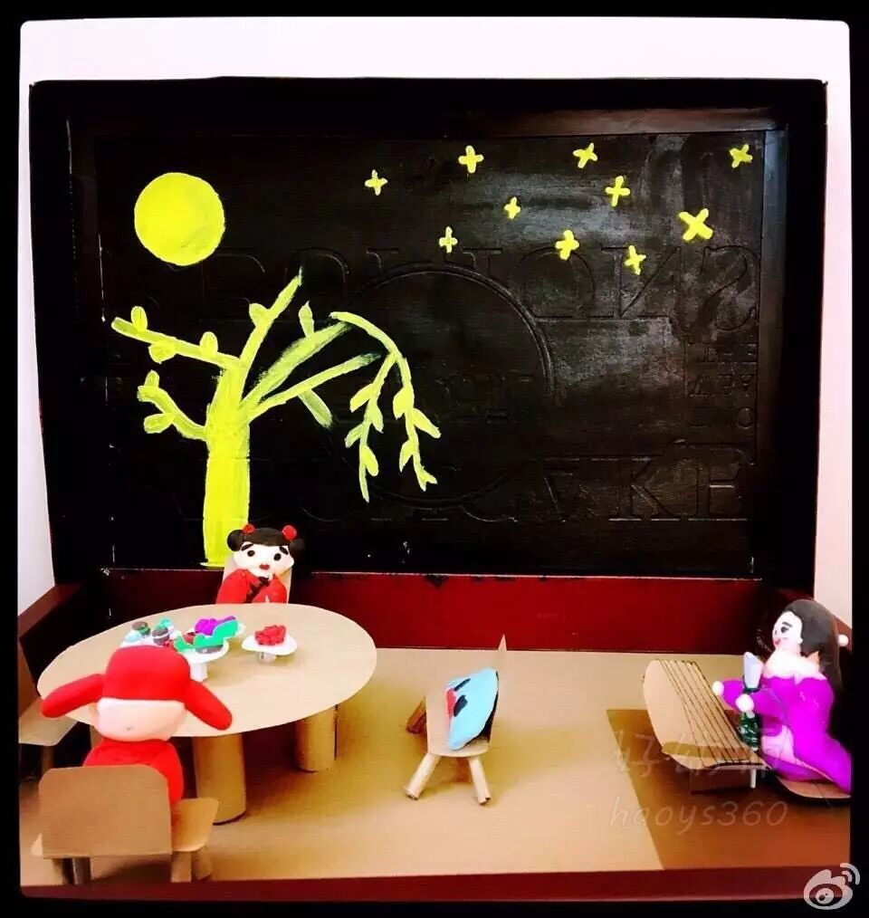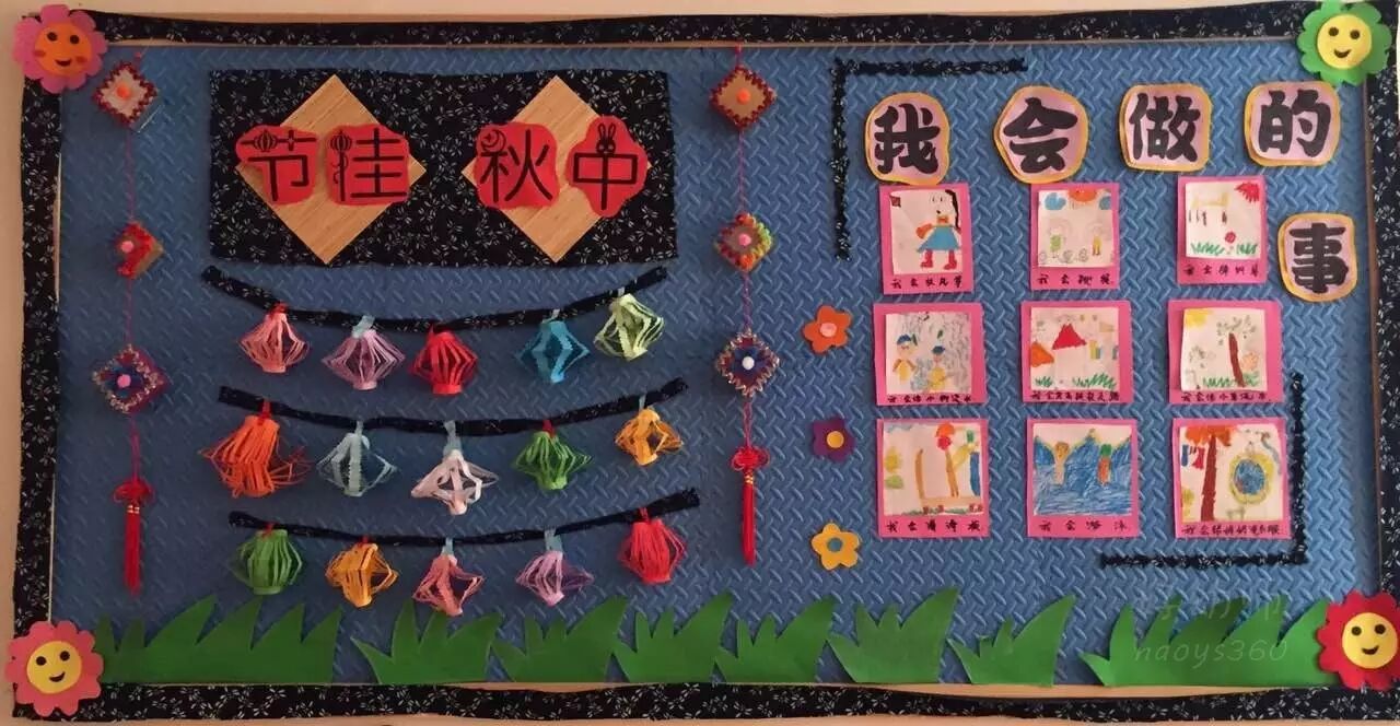 作品描述:中秋佳节,五彩灯笼挂起来。丰富主题墙。