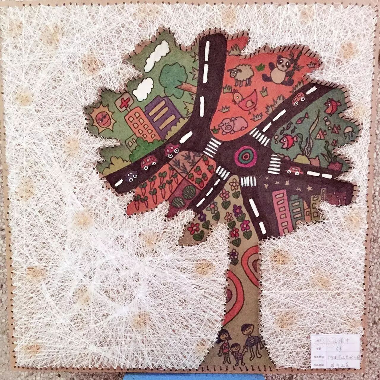 作品描述:通过最原生态的麻绳结合色彩明快的布织布以及废弃的凉扇,使主题更加鲜明生动