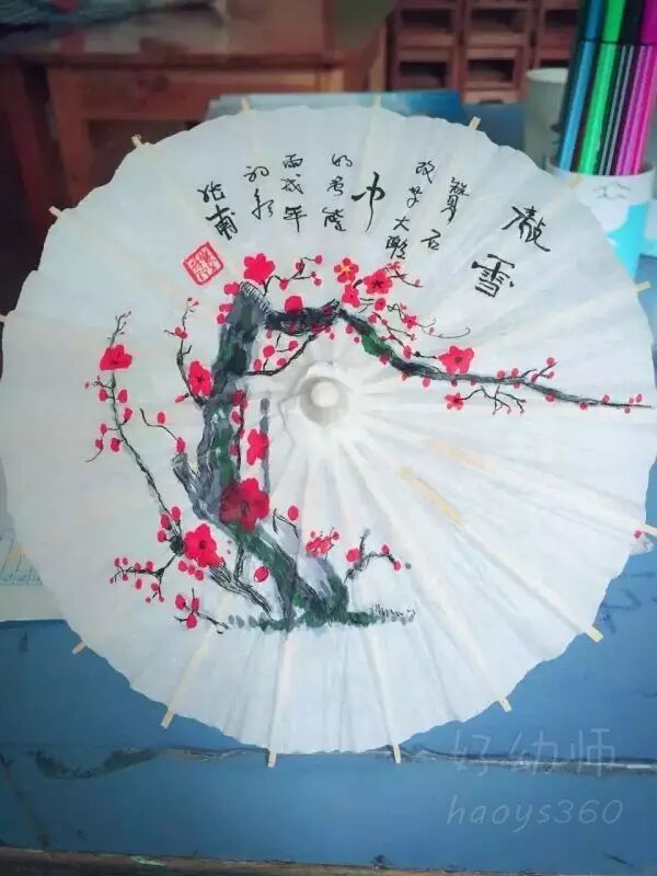 作品描述:国画是我们中国的国粹,油伞是江南的特色,让孩子了解更多的中国的历史。