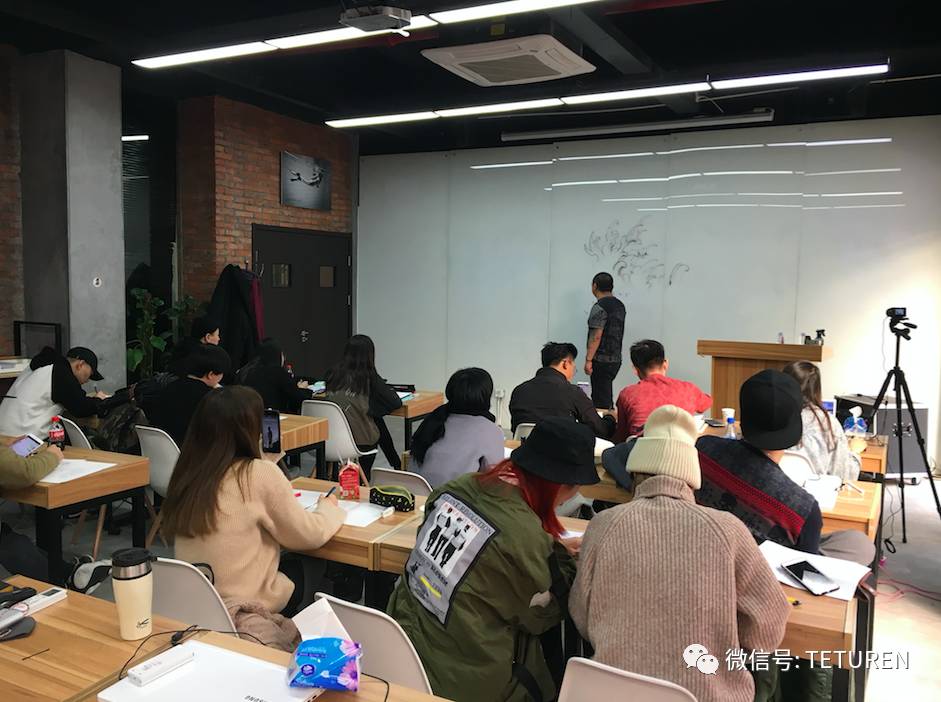 每教一步,都会邀请学生上讲台来亲自绘画并点评。