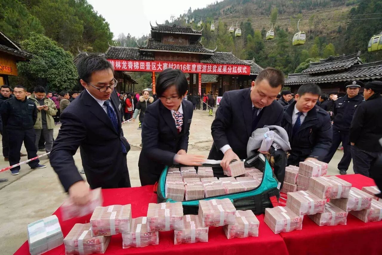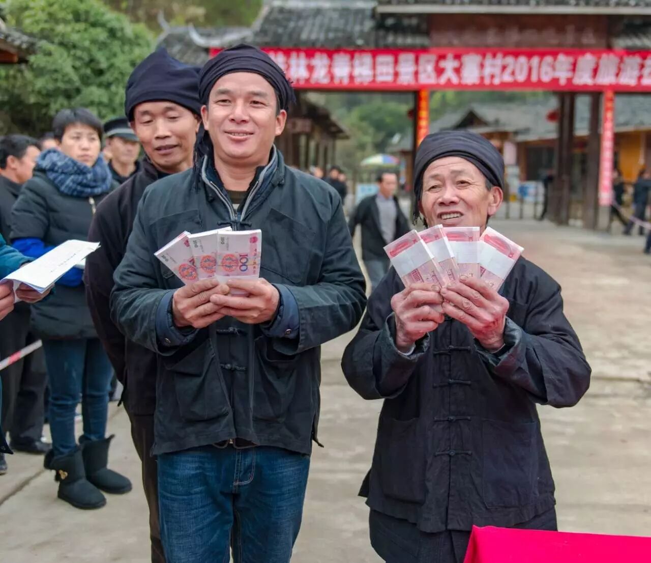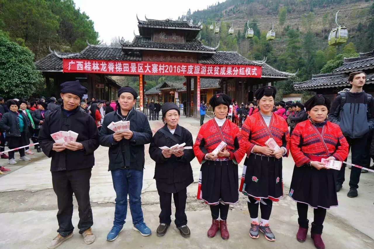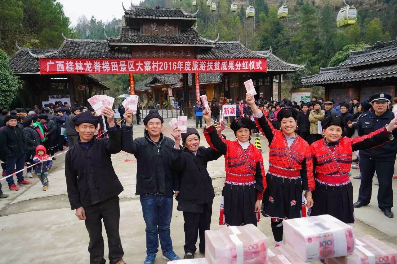 1月15日,桂林龙脊梯田景区大寨村2016年旅游扶贫成果分红仪式在龙胜各族自治县金坑瑶寨举行,龙脊梯田大寨村民2016年年终旅游分红共500万元,最多的一户领到4.35万元,成为国内新闻热点和各界热议的焦点话题。