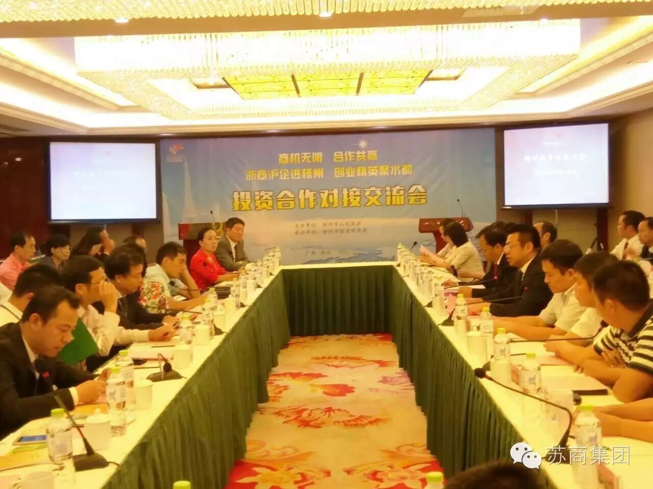 苏商第四建设集团总裁张通;梧州市投促局局长李立强,梧州市下辖市、县、区主要领导等参与交流。