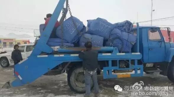 阿克陶县调拨帐篷、棉衣等应急物资,运往灾区。