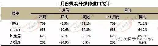 动力煤方面,1月份动力煤进口量为958万吨,环比下降10.6%。1月份中国进口动力煤最多的国家是澳大利亚,进口量为421万吨,环比下降8.6%,同比涨幅65.9%;排在第二位的是印度尼西亚,1月份出口中国煤367万吨,环比下降19.5%,同比上升78.5%。