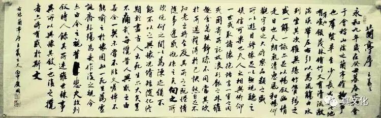 看不完的锦山秀水/春花秋月,回味不尽的乡愁旅思/离情别恨,书不尽的江山社稷/家国情怀。在董老师墨香四溢的工作室,我是再一次感受到了书法的无穷魅力.老师从容的摊开宣纸,思量片刻,然后饱蘸笔墨,紧劲联绵,循环超忽.王羲之的《兰亭序》在老师笔下,线条之间牵连如游丝似飘风,风吹欲绝而不绝。又似枯藤,袅袅枯藤万丈悬。尾句“故列叙时人,录其所述,虽世殊事异,所以兴怀,其致一也。后之览者,亦将有感于斯文”笔收之处奔放自如更流露出艺术家遗世高蹈、天马行空潇洒的神游姿态。真正的一笔而就、气脉通连。潇洒落笔,畅快淋漓、激情流荡的书法令在座的人是齐声叫好。