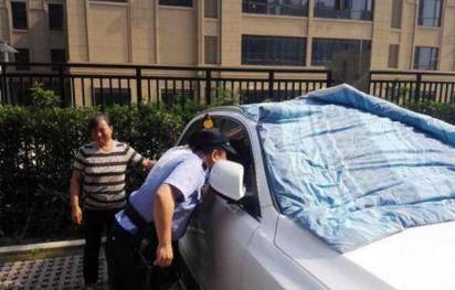 刘女士立即报了警,在等待民警赶来的过程中,刘女士见气温较高,就拿来棉被浇上凉水后盖在前车窗上给车内降温,并找来小玩具隔着车窗哄女儿,稳定女儿情绪。