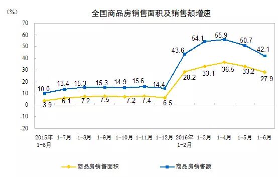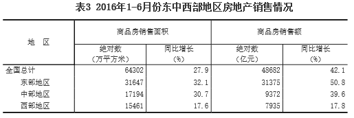 原标题:2016年1-6月份全国房地产开发投资和销售情况