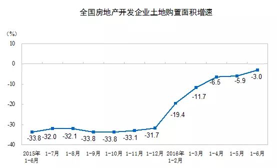 1-6月份,房地产开发企业土地购置面积9502万平方米,同比下降3.0%,降幅比1-5月份收窄2.9个百分点;土地成交价款3159亿元,增长10.2%,增速提高5.5个百分点。