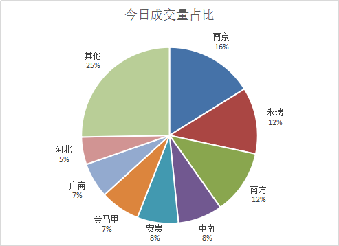 南京今日早盘冲高,午后回落,走势依旧与中南一致。下跌藏品是上涨藏品数的一半,但有权重股的拉升,仅弱势下跌。操作上建议大家把2383设为中线止损位,在此点位之上,高抛低吸,短线操作,一旦跌破,果断出局。