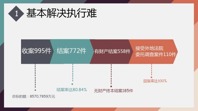 今年以来,,着力规范执行行为,改变执行观念,创新完善执行方法,积极推进“基本解决执行难”有关工作,着力破解执行难题。