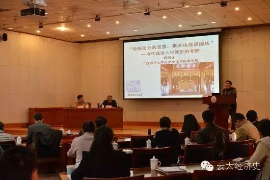 大会报告阶段,共有六位校内外优秀青年学者应邀阐释最新成果。广西师范大学陈国保教授的报告题为《“驰驱臣分敢言劳,事济功成皆国庆”——清代越南入华使臣的考察》、南京大学李恭忠副教授的报告题为《民族主义的“发明”——辛亥革命前后的秘密社会论说》、陕西师范大学潘威副研究员的报告题为《基于中日韩三国历史文献记录的东北亚沿海地区台风频率序列重建(1650-1911AD)》、云南大学钱金飞副教授的报告题为《研究视角在历史研究中的作用:以史学界对德意志民族神圣罗马帝国的评价为例》、中国社会科学院庄小霞博士的报告题为《里耶秦简所见秦统一衡制新证》、云南大学张轲风副教授的报告题为《<禹贡>“导河积石”非河源记载辨正》,报告人准备充分、讲演精彩,评议人点评到位、且为呼应。