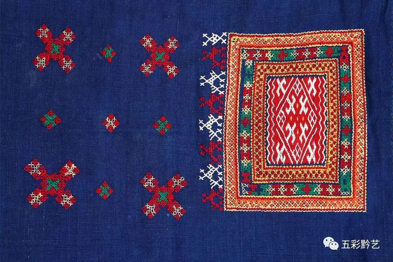 ◥挑绣方块纹、十字交叉纹细节图
