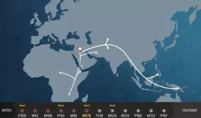 目前参加测试的已经有来自130个国家的75万人。参加的人越多,迁徙路线就越准确。我前不久也参加了测试。测试的结果包括我的父母两支祖先的迁徙路线,和我的基因类型在地球各地区的分布。下面是我的测试结果分析及相关的现有关于人类迁徙的研究。
